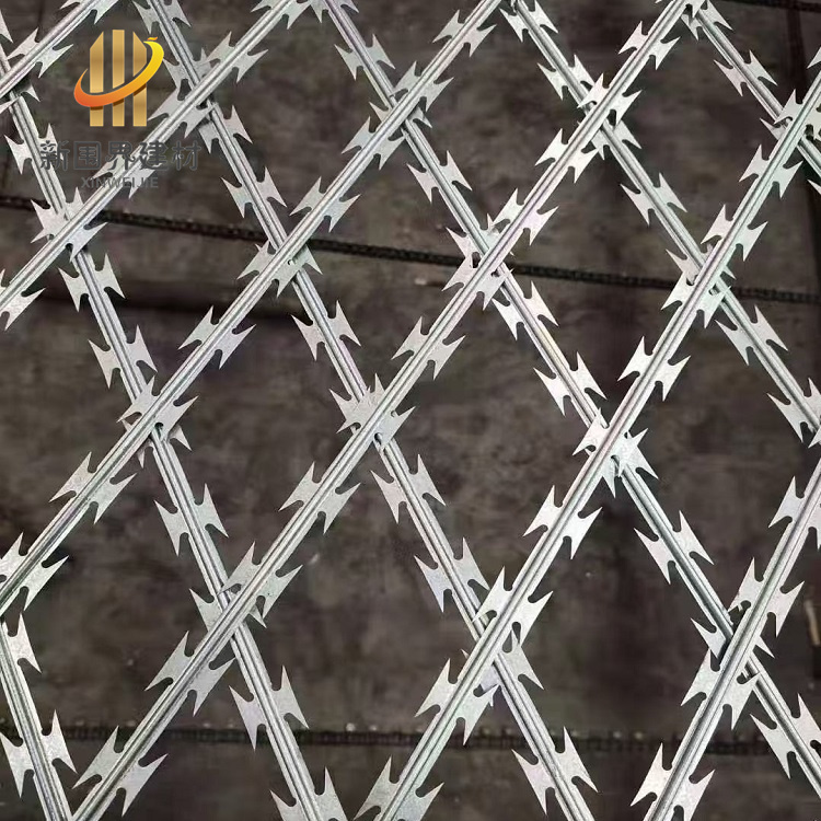 监区是一个充满危险和暴力的地方,对于囚犯的管理和安全防护显得尤为重要。在监区,囚犯之间可能存在着矛盾和冲突,甚至可能出现暴力事件,为了维护监区秩序和囚犯的安全,需要采取有效的防护措施。而在这些防护措施中,焊接刀片刺绳防护网便起到了至关重要的作用。 焊接刀片刺绳防护网是一种通过将刀片刺绳焊接在金属网片上制成的防护设施。这种防护网具有坚固耐用、尖锐危险的特点,可以有效地阻止囚犯进行越狱、暴力事件或自残行为。刀片刺绳的锋利使得囚犯无法轻易接触或攀爬墙壁,从而有效地增强了监区内的安全性。