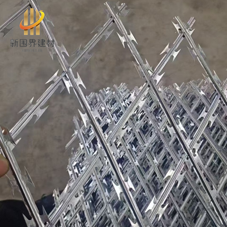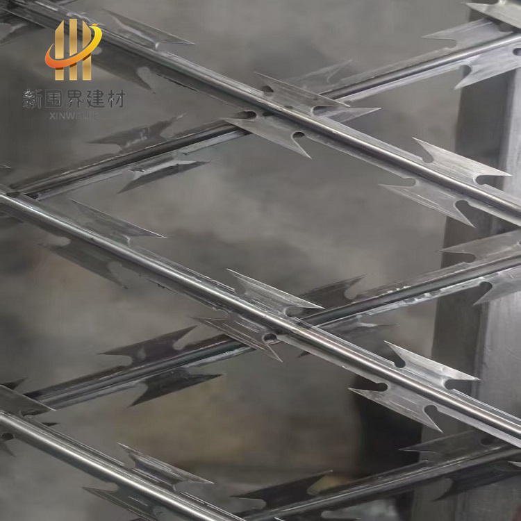 焊接刀片刺网具有防锈性能强、吓阻效果好、施工便捷、经济实用等优点,适用于多种安全防护场景。采用镀锌钢板或不锈钢薄板制造刀片,结合高张力钢丝芯线,具备优异的防锈能力,适合长期户外使用。刀片尖锐设计能有效阻止攀爬或破坏行为,兼具美观与威慑力,适用于监狱监区、巡逻通道、军事禁区等高安全需求场所。我厂专业生产焊接刀片刺网,欢迎随时联系我们!