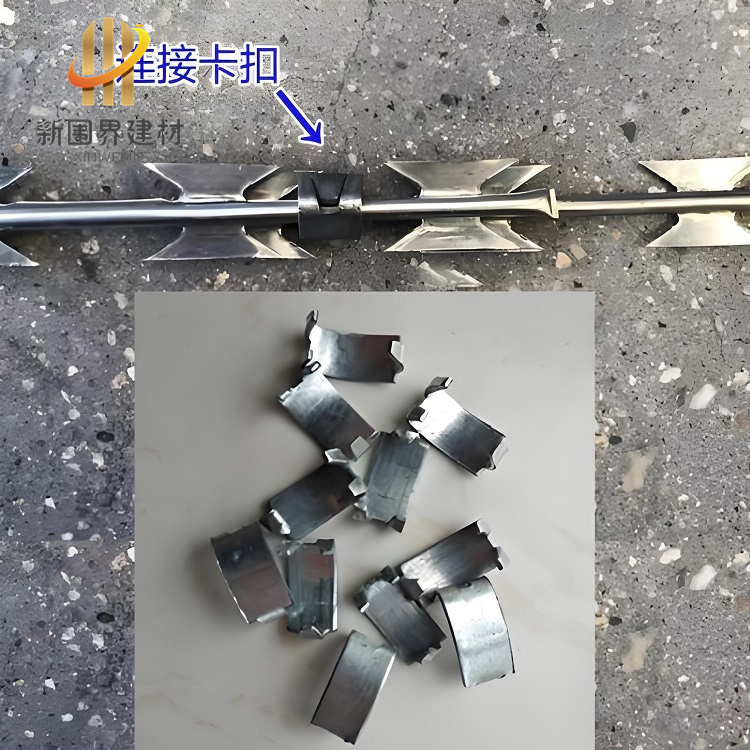 直线型刀片刺绳采用连接卡扣进行每根之间的连接,连接成为整体后,通过“M”型卡子加螺丝固定到立柱上。